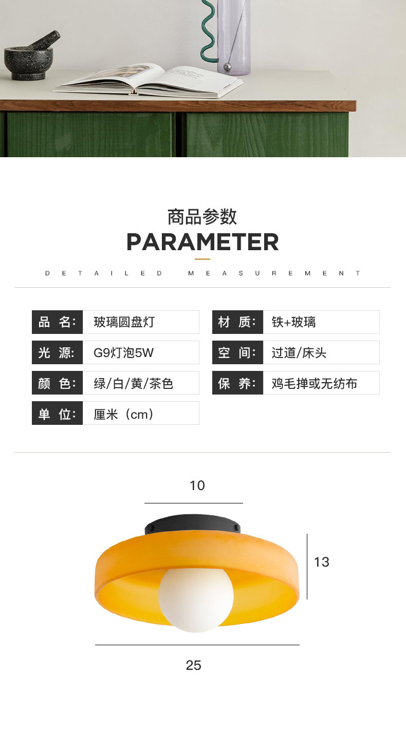 室创意过道艺术中古入户玻璃奶油顶灯古壁吸顶灯玄关关入豪斯走